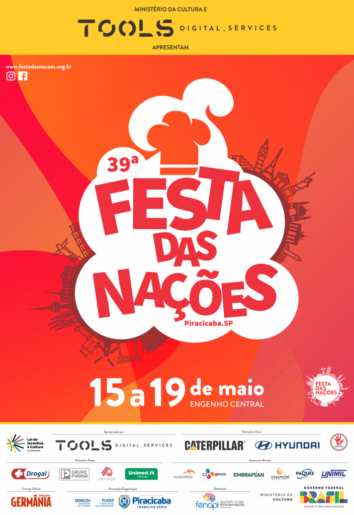 Site: www.festadasnações.org.br. Facebook: festadasnacoesdepiracicaba. Instagram: festadasnacoesdepiracicaba.
