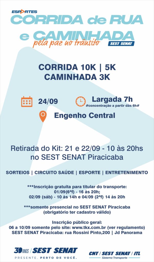 ***somente presencial no SEST SENAT Piracicaba (obrigatório ter cadastro válido)