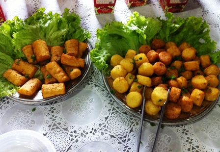 Foto 1: Porções de mandioca frita, bolinho de mandioca (sem glúten) nos sabores natural, alho, queijo e calabresa Foto 2: Representantes do Centro Comunitário de Ártemis e a secretária de Turismo, Rose Massarutto, divulgando a 11ª edição da Festa da Mandioca de Ártemis Crédito: Divulgação Secretaria de Turismo de Piracicaba