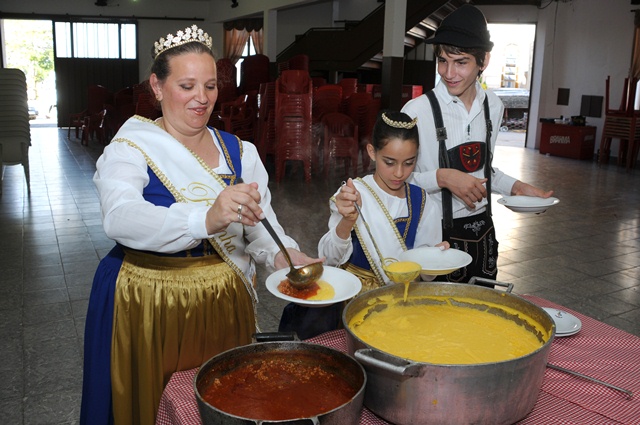 Cardápio – Porções: polenta rostida (frita), polenta brustolada (assada na chapa), polentota (mini polenta com molho), cuscuz, cervela (salsichão bovino), linguiça campestre (bauerbratwurst), porção tirolesa (4 tipos de salsichas campestres) – Bebidas: vinho de uva e laranja, sangria, sucos, água, cerveja e refrigerantes – Sobremesas: doces e sorvetes – Canéderli: sopa de nhoque preparada com pão amanhecido, trigo, frango, linguiça e temperos diversos – Prato típico: polenta, frango ao molho, cucàgna (fritada de ovos misturados com linguiça, tomate, cebola, queijo, bacon) e cràuti (repolho curtido, cozido com linguiça calabresa, bacon) – Spaghetti