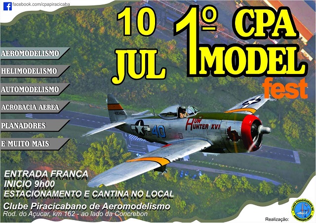 O Clube Piracicabano de Aeromodelismo (CPA) recebe, no dia 10 de julho, a primeira edição do CPA Model Fest, evento voltado para apreciadores das diferentes modalidades do modelismo. A estreia conta com exposições estáticas de aeromodelos, automodelos, helicópteros, dentre outras aeronaves. Além de apresentações nas categorias de aeromodelismo e automodelismo, que incluem jatos, planadores e drones, também serão realizadas demonstrações de acrobacia aérea IMAC (International Miniature Aerobatic Club) e FAI-F3A (Federation Aeronautique Internationale), além do pylon race, categoria específica para modelos de alta velocidade utilizados em competições de corrida aérea.