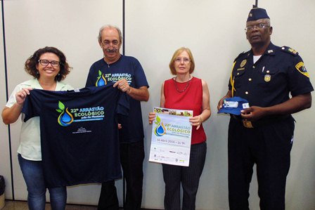 Legenda da foto: (da esquerda para a direita) Elizabeth Nunes, representante do Núcleo de Educação Ambiental/SEDEMA; José Carlos Masson, representante da Comissão Organizadora do Arrastão; Rosa Morais, Secretária da Agenda 21 da OSCIP Pira 21; e Inspetor Benedito Moraes, Subcomandante na Guarda Civil e Presidente da Comissão de Eventos Cívicos, divulgando o 22º Arrastão Ecológico e evento cívico em comemoração ao Dia do Rio Piracicaba. Crédito da foto: Divulgação Setur