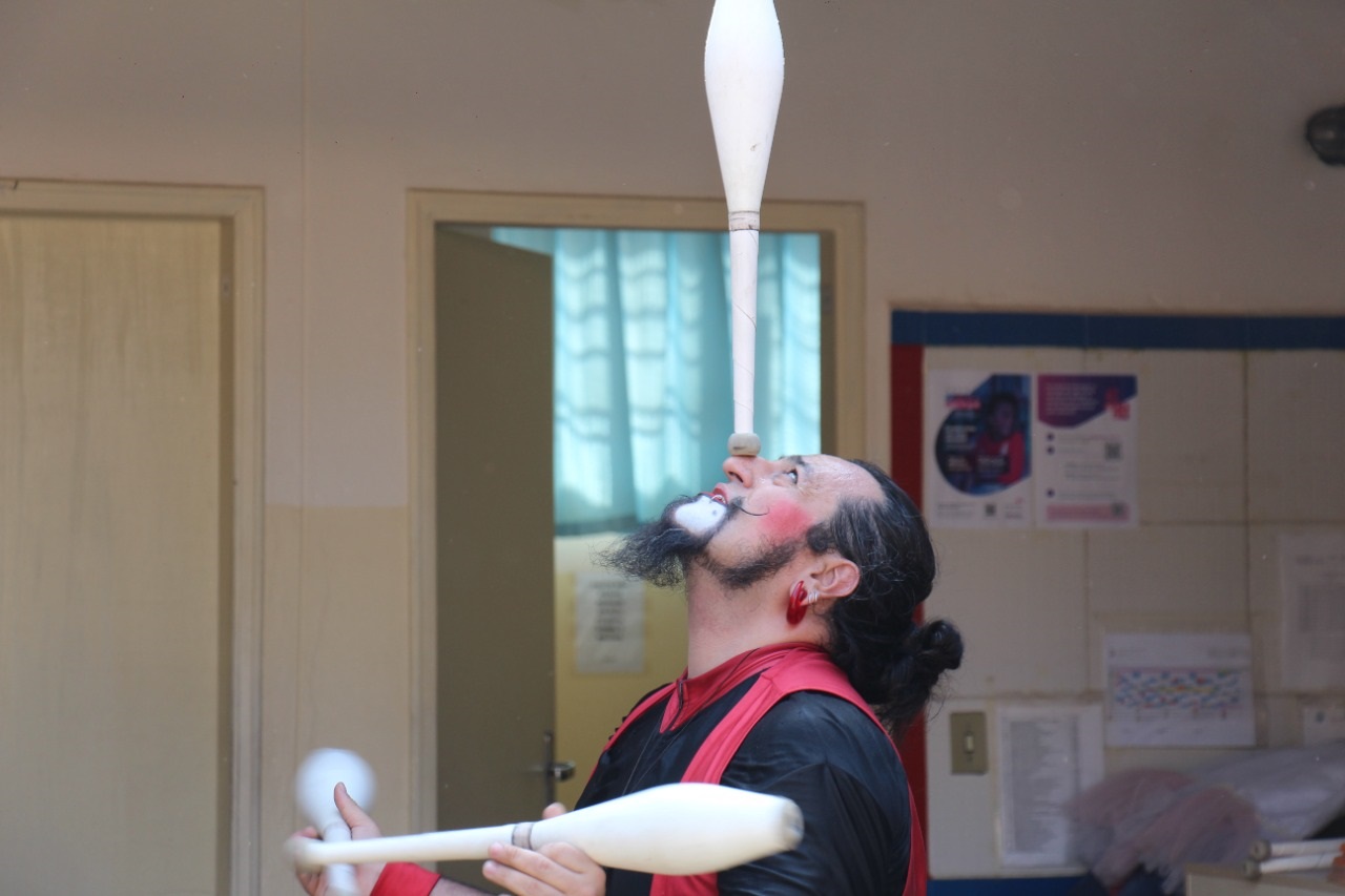 A arte circence invadiu o 1° dia letivo do 2° semestre de 2022 na EM Joaquim Carlos Alexandrino de Souza.