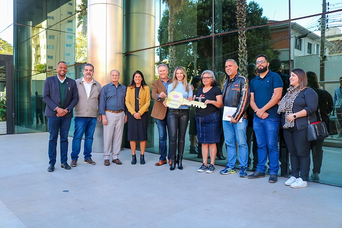 Cerimônia de entrega das chaves aconteceu na tarde de hoje, terça-feira, na sede da Embraplan "Essa rifa ajudou as entidades e é uma alegria a gente saber que a Elaine e as instituições ganharam com essa rifa e também o Fundo Social, ao saber que todos estão assistidos", disse Andréa. Para Beltrame, a entrega do apartamento fechou com chave de ouro todo o processo que foi a organização e promoção da Festa das Nações. "A entrega das chaves do apartamento foi o fechamento, mas a festa inteira foi muito linda e superou as expectativas das entidades. A Embraplan é uma empresa sensível e solidária. O apartamento foi um reforço para uma festa já de grande sucesso. É muito gratificante estar aqui vendo essa família receber o apartamento", concluiu o secretário. Toda a renda com a venda da rifa do apartamento e a renda da 37ª edição da Festa das Nações de Piracicaba, realizada no Engenho Central, de 18 a 22/05, foram revertidas para 22 instituições sociais de Piracicaba, que atendem cerca de 30 mil pessoas. A 37ª Festa das Nações foi realizada pela Fenapi (Associação Festa das Nações de Piracicaba), com promoção da Prefeitura de Piracicaba, por meio do Fussp (Fundo Social de Solidariedade de Piracicaba), organização da Secretaria Municipal de Governo. Uma parte dos recursos vieram da Lei de Incentivo à Cultura, via Secretaria Especial da Cultura e Ministério da Cidadania.
