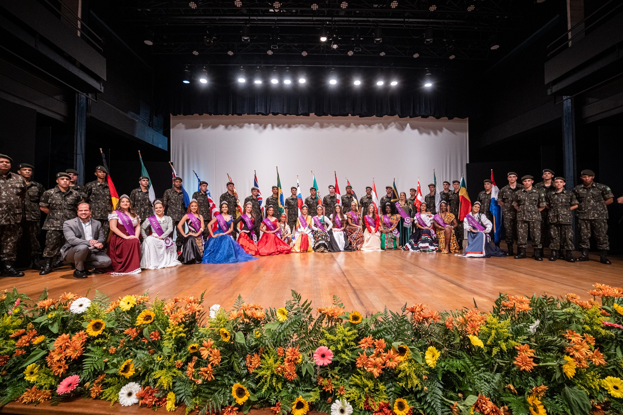 RAINHAS – As rainhas da 38ª Festa das Nações representam 17 nações, sendo quatro novas: África do Sul, Áustria, Congo e Moçambique. Elas foram apresentadas, também, na cerimônia de ontem, acompanhadas dos atiradores do Tiro de Guerra, e coroadas pelo prefeito Luciano Almeida e por Andréa Almeida.