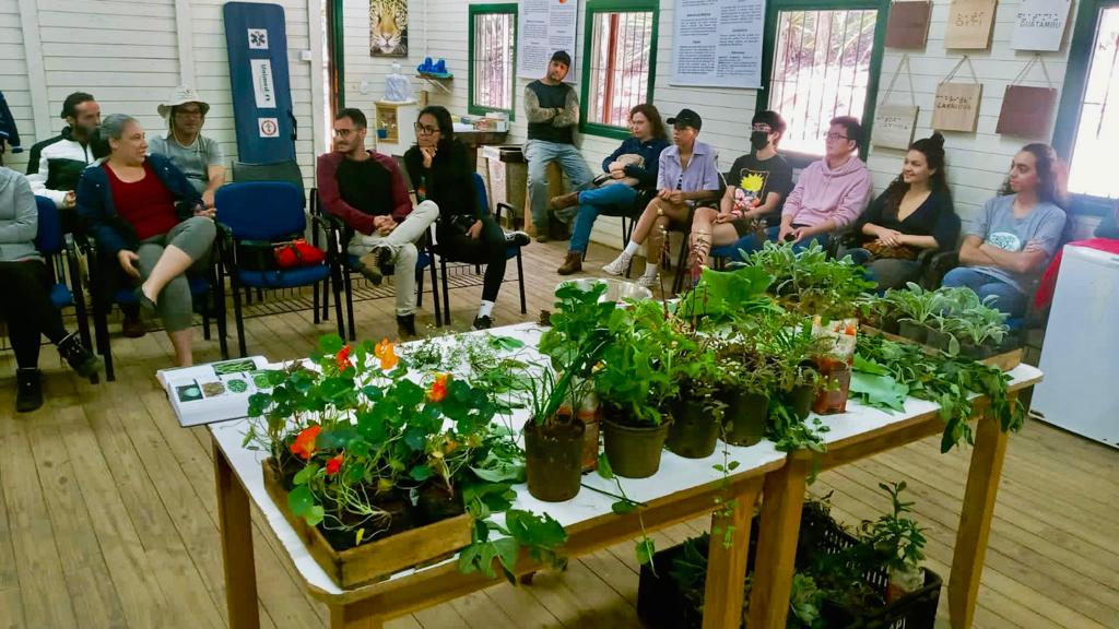 Após o plantio, os participantes se reuniram no Centro de Visitantes para uma roda de conversa, onde compartilharam experiências e saberes e puderam trocar informações sobre as Plantas Alimentícias Não Convencionais (Pancs), trazidas pelos próprios participantes: taioba, ora-pro-nobis, peixinho, feijão-espada, bertalha, urtiga, capuchinha, mentruz, caruru, beldroega, entre outras. Durante a conversa, discutiram sobre as formas de cultivo e também sobre receitas culinárias utilizando essas plantas.