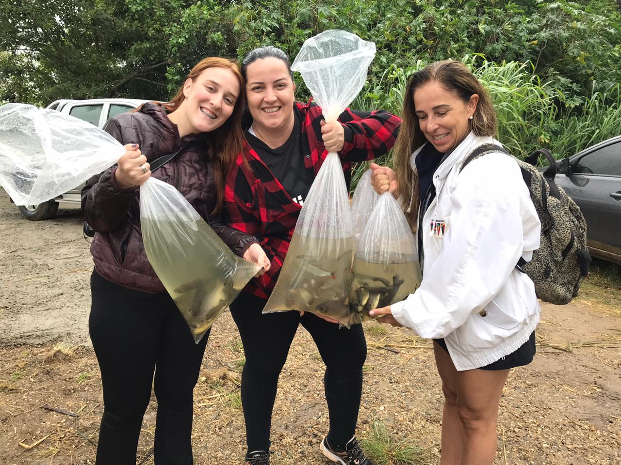 Voluntários e protetores participaram da soltura dos alevinos no Rio Piracicaba