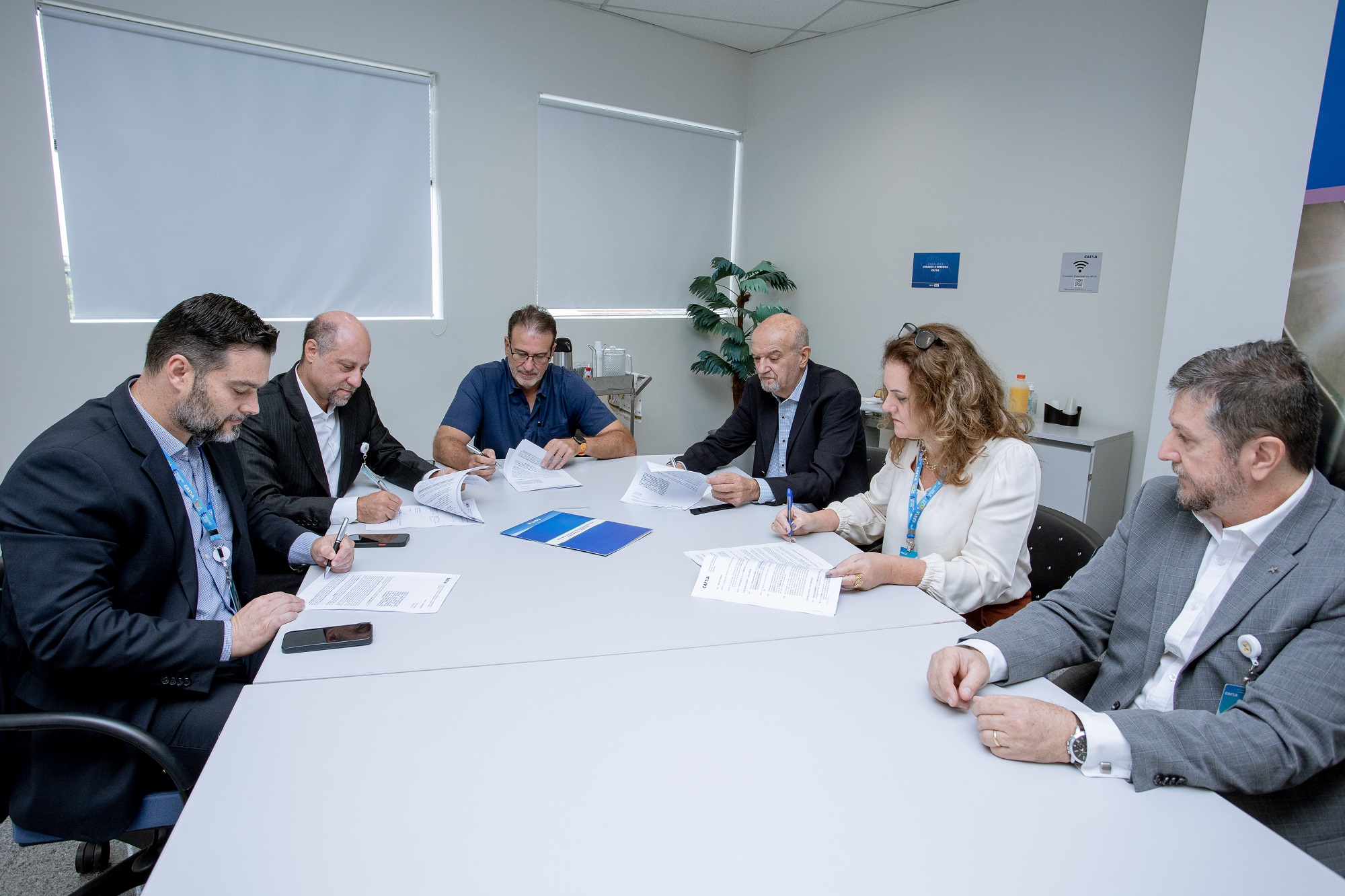 Contrato foi firmado hoje, 10/05, na nova Sala de Cidades e Estados da sede empresarial da Caixa Econômica Federal As obras na ETA Capim Fino serão divididas em três etapas de implantação. Dentre os serviços, estão previstos o término da casa de bombas, com instalações hidromecânica e elétricas; adequações do Plano de Gerenciamento de Riscos (PGR) para produtos químicos; melhorias na iluminação, adequações de infraestrutura e acessibilidade. “Anunciamos hoje a celebração da assinatura do financiamento para terminar a ampliação da ETA Capim Fino, que é um projeto que ficou parado por muito tempo, por falta da contrapartida da Prefeitura. Então firmamos esse acordo para cumprir esse projeto e entregar a obra, que vai oferecer mais disponibilidade de água e, principalmente, cumprir a legislação ambiental no que diz respeito ao tratamento de lodo e segurança”, destacou Luciano Almeida. “Para a Caixa é uma satisfação poder participar. Na nossa missão, consta que é objetivo do banco público apoiar os municípios. Então, poder fazer parte dessa conquista tão importante para Piracicaba, nessa área de saneamento, para a Caixa é uma satisfação e uma sensação de missão cumprida”, acrescentou Eliseu Fernando Prudente Moda, superintendente executivo de governos da CEF. Também acompanharam a assinatura da minuta o presidente do Semae, Artur Costa Santos, José Roberto Mazzoldi Soriano, gerente de carteira, Celso Nucci, gerente de filial, e Ana Cristina Rigo Bazanelli, supervisora de filial, da Caixa Econômica Federal.