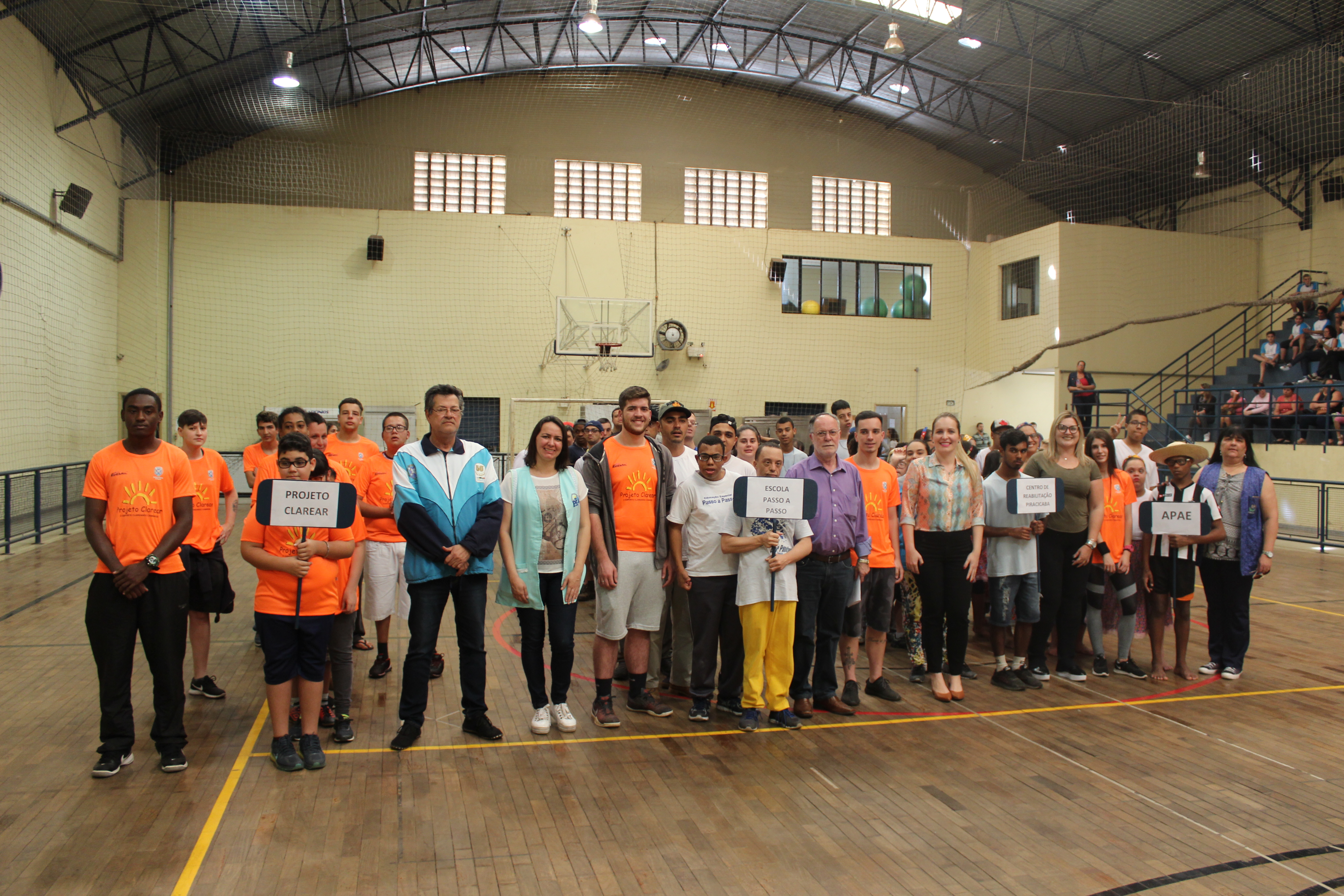 Aconteceu na tarde desta segunda-feira (26/08) a cerimônia de abertura da 18ª Olimpíada Municipal Especial, competição realizada pela Prefeitura Municipal, por meio da Selam (Secretaria Municipal de Esportes, Lazer e Atividades Motoras) em parceria com as entidades, escolas e instituições que trabalham com pessoas com deficiência na cidade. O objetivo do evento que prossegue até o dia 30/08 é valorizar e estimular a prática esportiva, como fator de promoção de saúde e bem estar, resgatando a autoestima para melhor convívio de pessoas com deficiência.