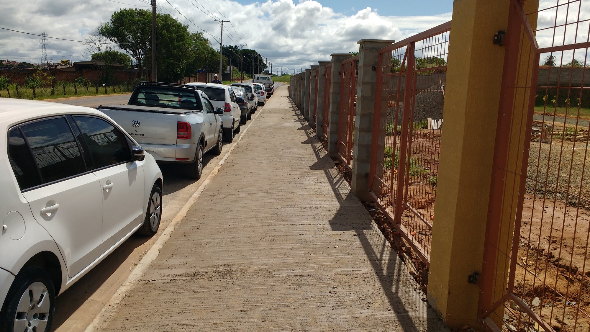Calçada pronta na avenida Elias Gabriel em frente à nova escola de ensino infantil e fundamental