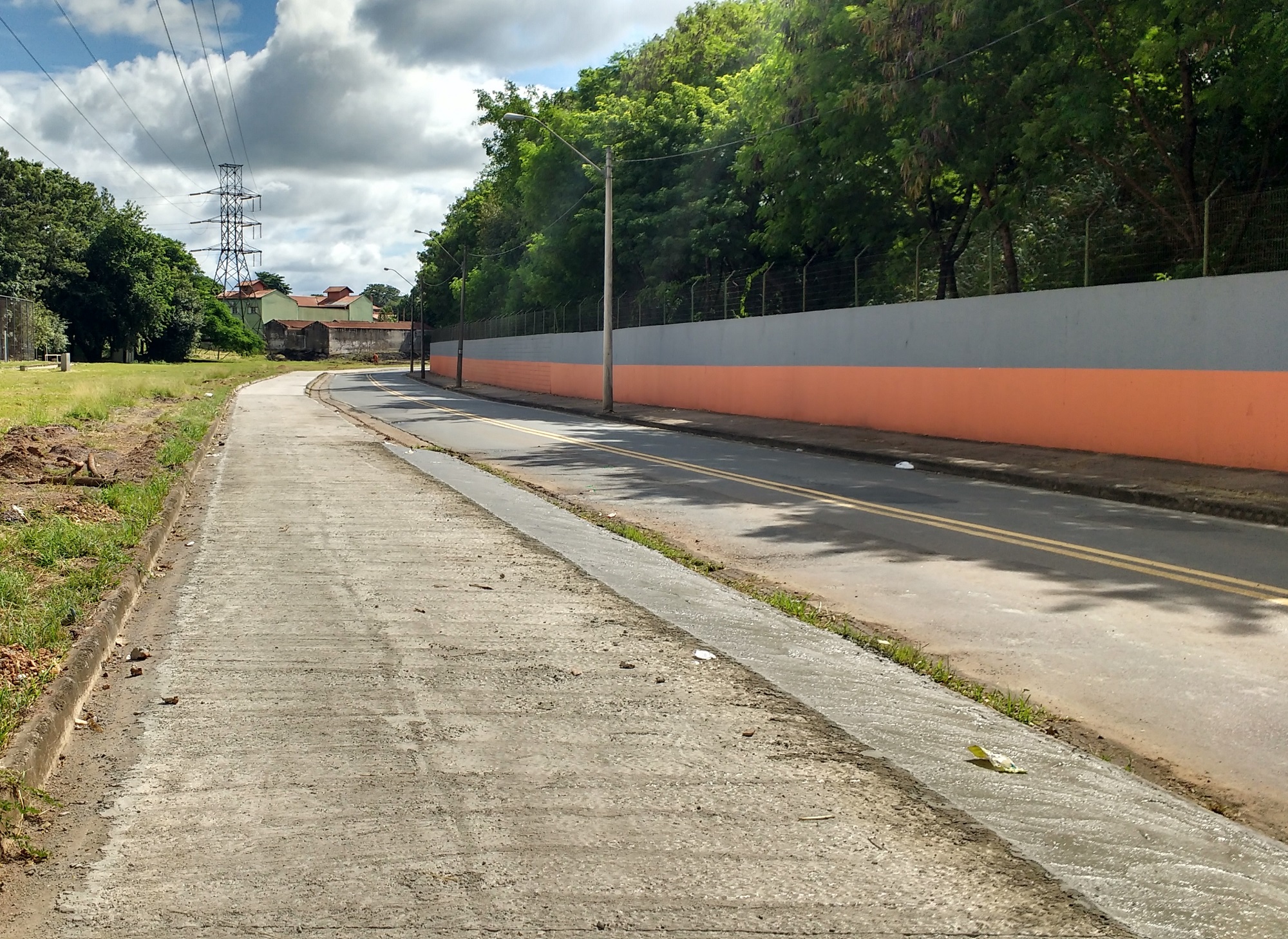 Trecho de calçada pronta na avenida Jules Rimet, no Jardim Primavera