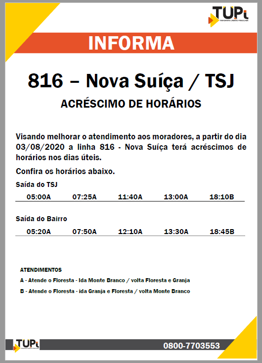 Acréscimo de horário para a linha 816 – Nova Suiça/TSJ