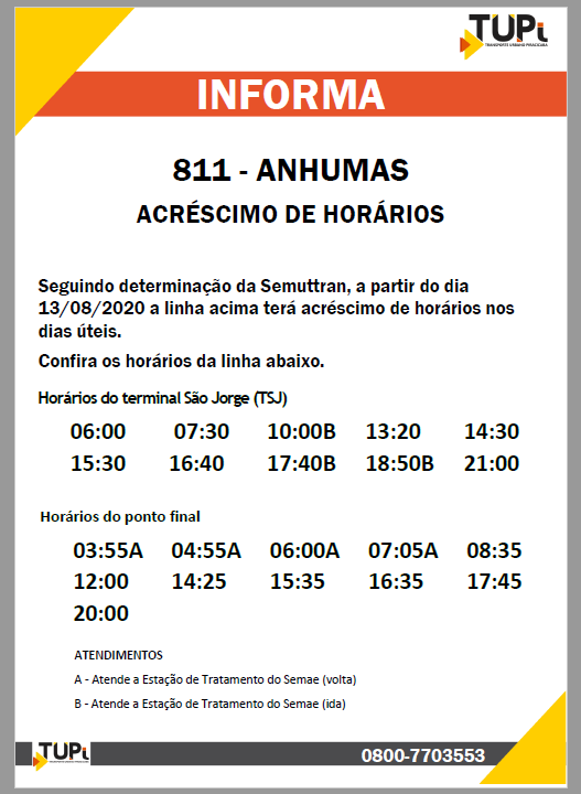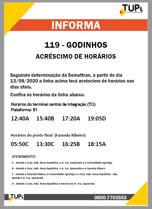 Acréscimo de horários para as linhas 119-Godinhos e 811-Anhumas