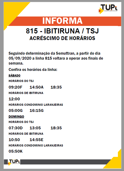 Acréscimos de horários para a linha 815-Ibitiruna/TSJ