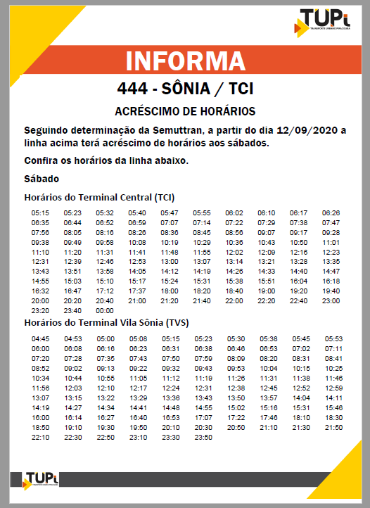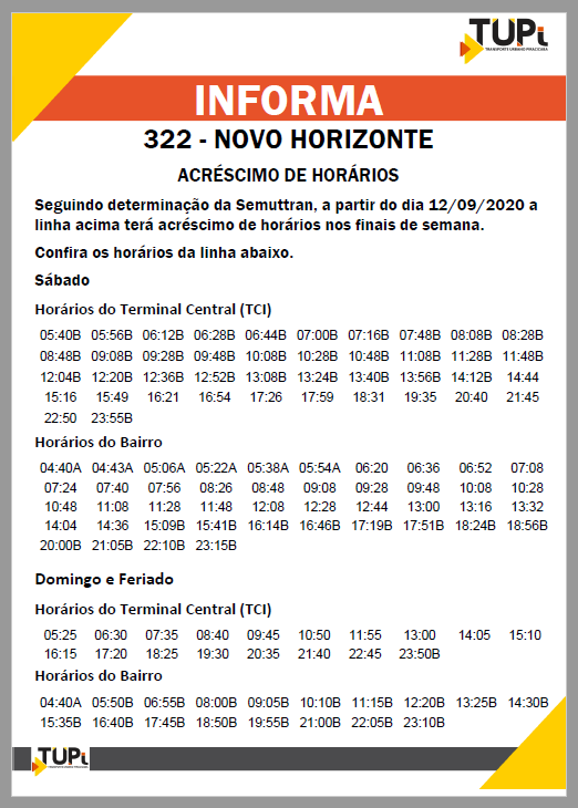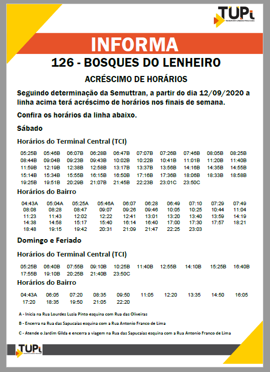 Acréscimos de horários para o transporte coletivo