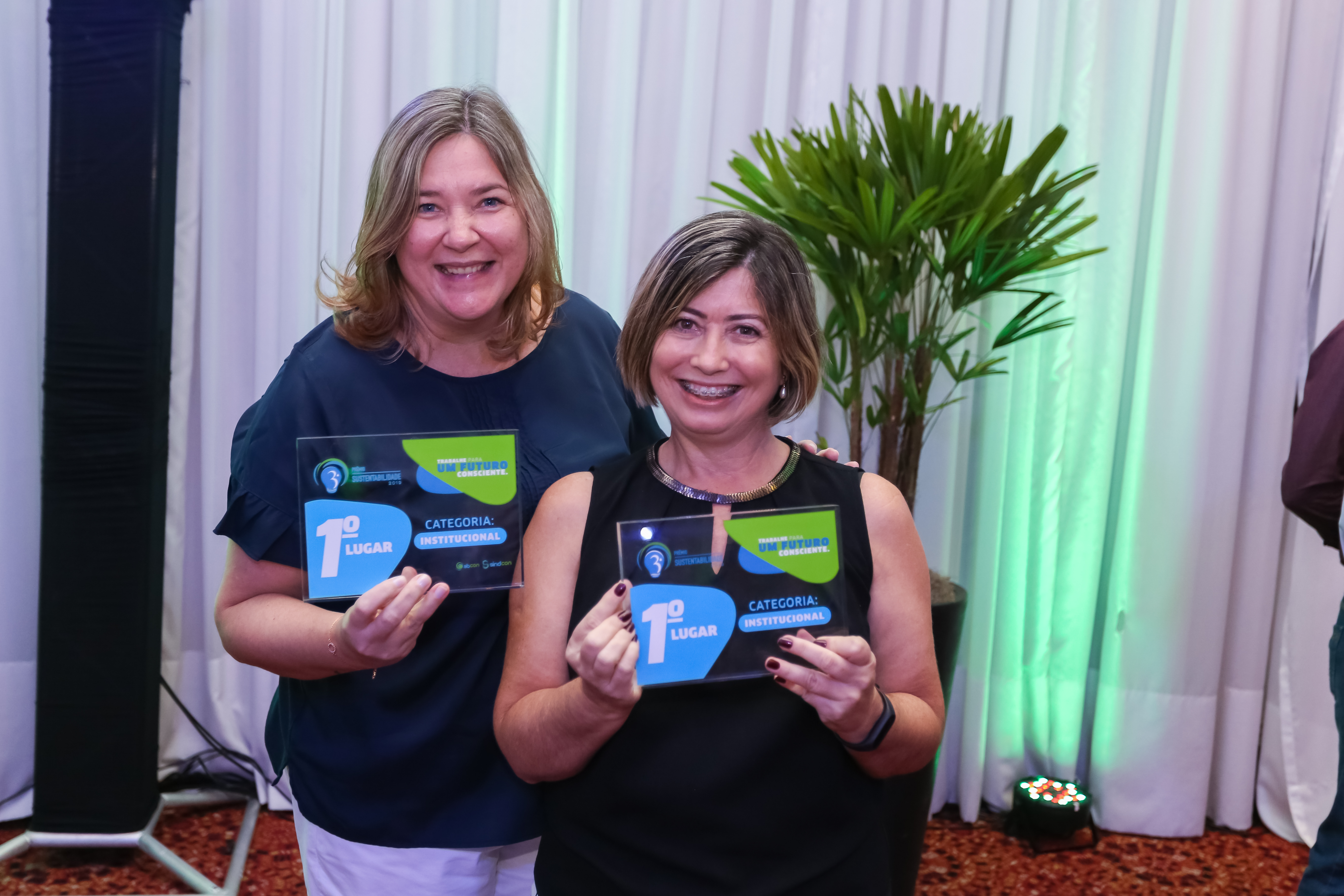 Maria Aparecida Draheim e Adriana Pereira, da concessionária Mirante com o prêmio