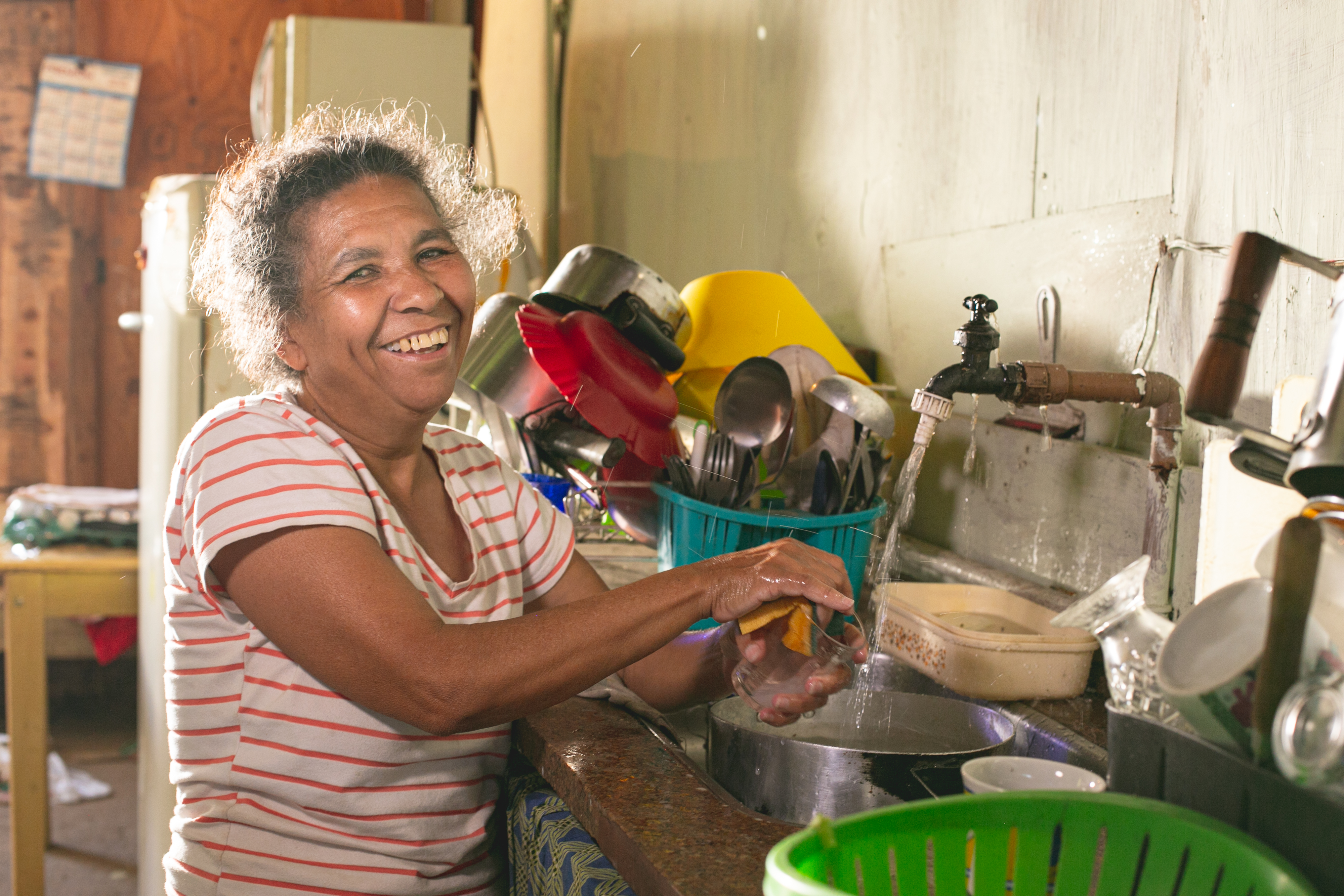 Moradora da Comunidade Pantanal, em Piracicaba, é uma das usuárias satisfeita com o sitema de distribuição de água e coleta de esgoto