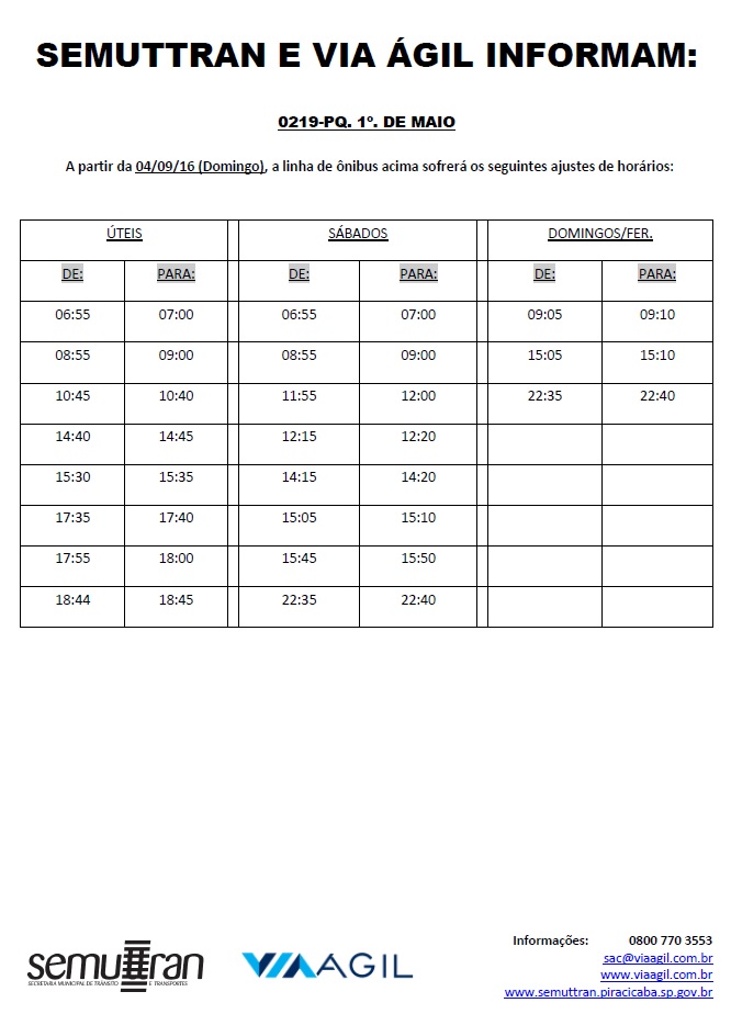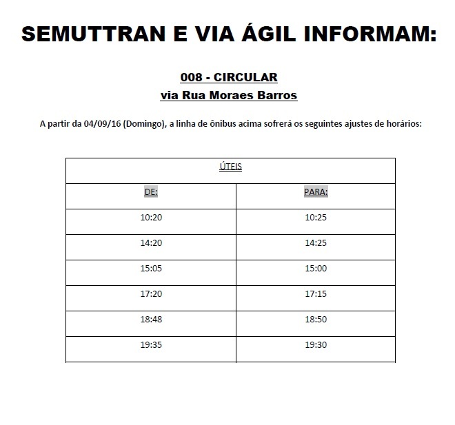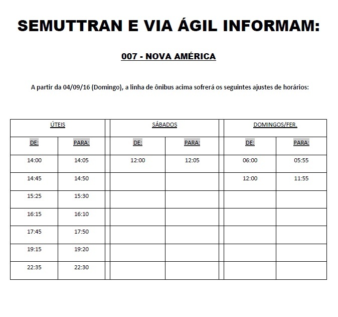 Ajustes de horários em decorrência das alterações da Linha Jardim Oriente