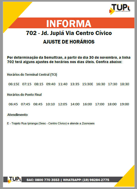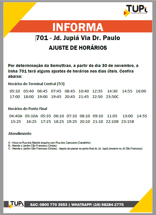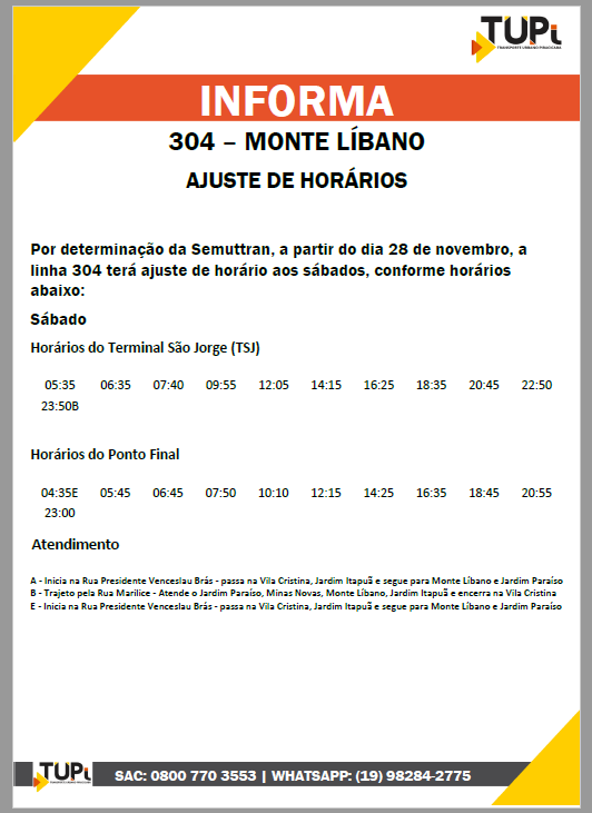 Ajustes de horários para as linhas do Monte Líbano e Jardim Jupiá