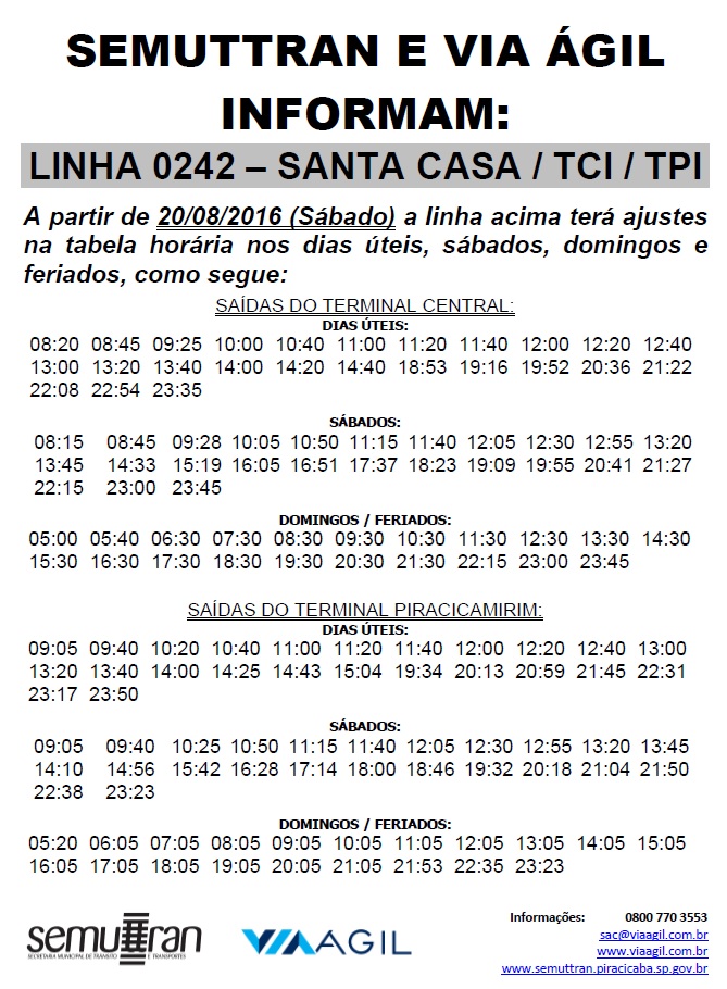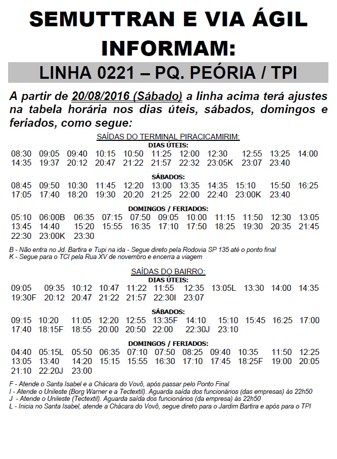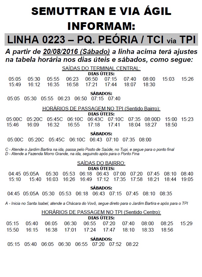 Ajustes nos horários das linhas 221, 223 e 242 do Transporte Coletivo