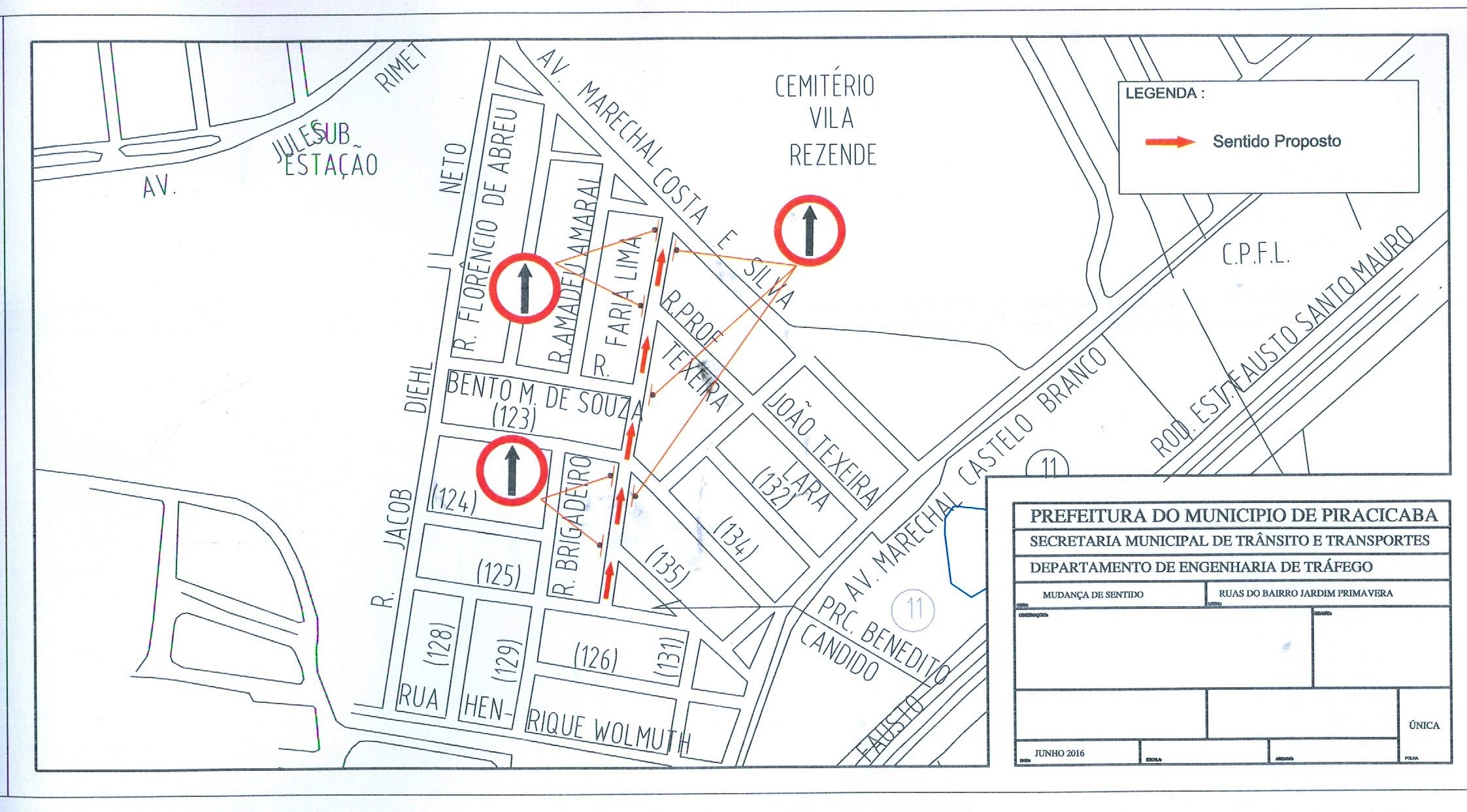 Para melhorar a entrada e saída dos moradores do bairro Jardim Primavera, entre as ruas Professor José Amaral Mello e Marechal Costa e Silva, a Prefeitura Municipal de Piracicaba elaborou estudos que mostraram a viabilidade do sentido único na rua Brigadeiro Faria Lima.