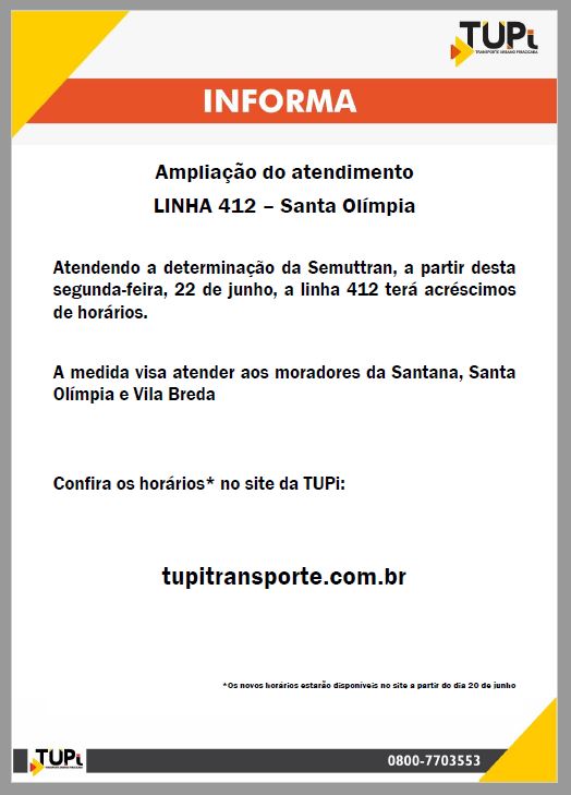 Alteração na tabela horária da linha 412-Santa Olímpia