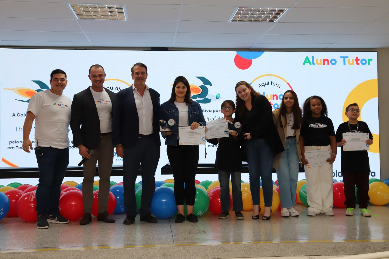 Alegres e com muito conhecimento adquirido, 54 alunos matriculados nos 4ºs anos de 19 escolas de Ensino Fundamental na Rede Municipal de Educação receberam na noite de ontem, quarta-feira, 28/06, os certificados de conclusão das aulas do Programa Aluno Tutor, que visa o ensino das tecnologias da plataforma Google For Education.