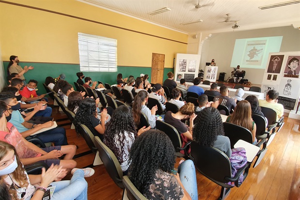 Após a visita, monitorada e organizada pela equipe do Museu Prudente, os alunos foram recepcionados no Auditório Helena Rovay Benetton pelo Mestre Geninho, com a apresentação musical, gingado de capoeira e dinâmicas envolvendo a arte, a cultura e a dança.