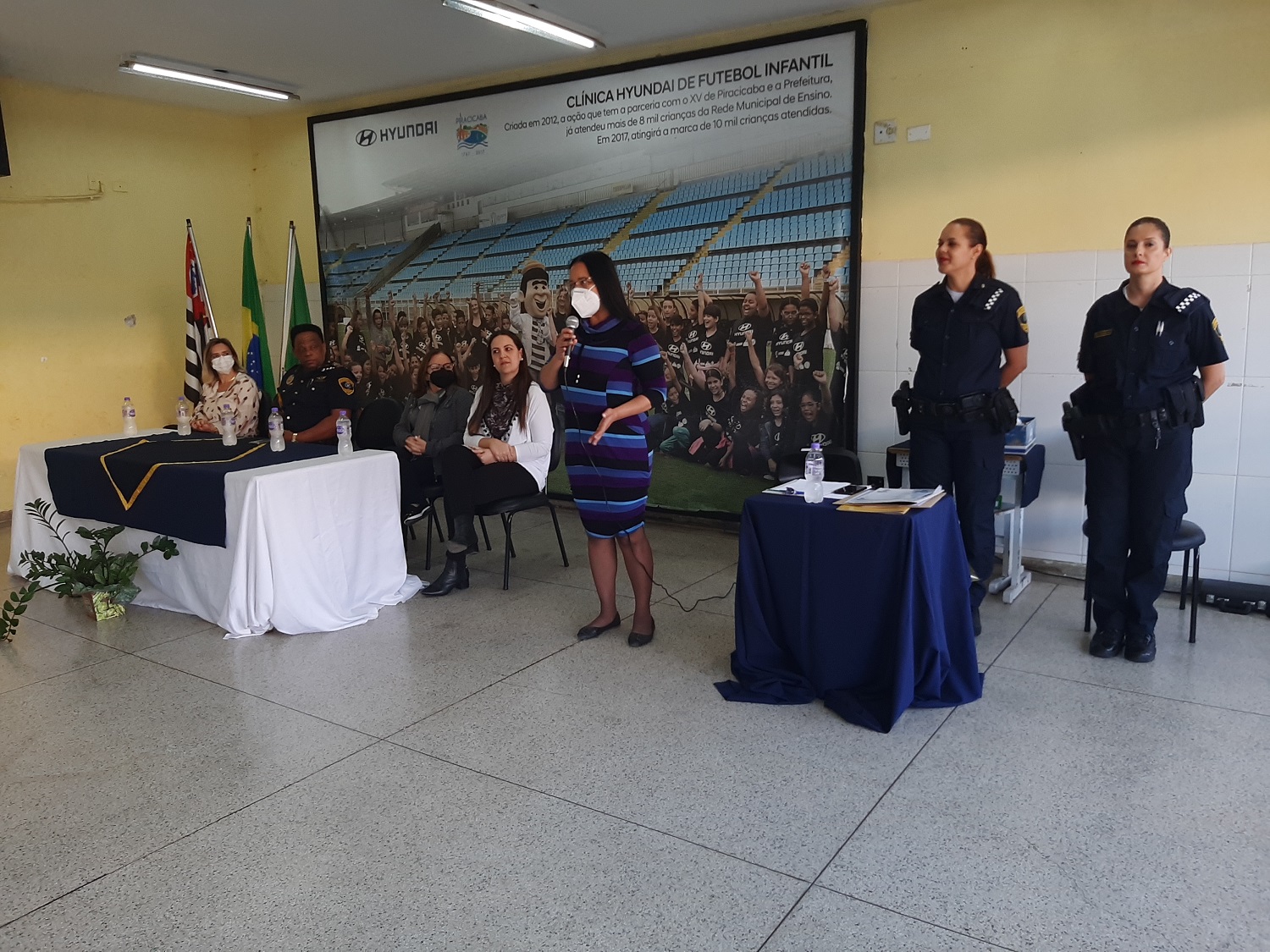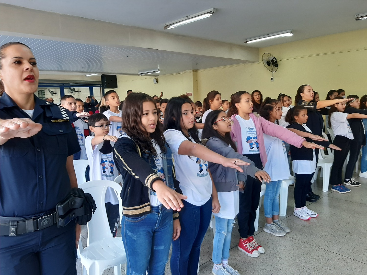 Alegria e orgulho marcaram a formatura, na manhã de ontem, 29/06, das 47 crianças de duas salas de quinto ano da Escola Municipal Professora Antônia Jesuina Camillo Pipa, no bairro Santa Rosa, no programa Guarda Civil Educação é Prevenção (GCEP), desenvolvido pelo Pelotão Escolar da Guarda Civil, que ministra aulas em escolas públicas municipais para alunos dos 5º anos do ensino fundamental com temáticas variadas, como o bullying, ciberbulying, drogas e violência doméstica. O evento contou com a presença de pais e da comunidade escolar e a participação da Banda da Guarda Civil. Formandos fizeram uma parceria com a Banda e cantaram o Hino de Piracicaba durante a solenidade.