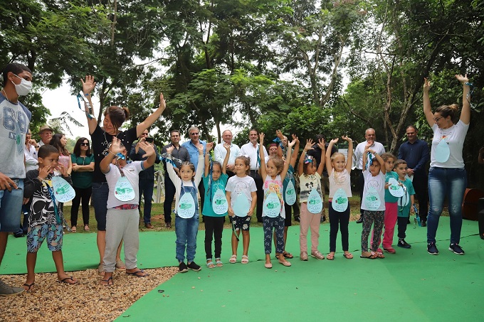 Os alunos da escola Deolinda Elias Cenedese apresentaram a música Água, do grupo Turminha do Tio Marcelo. “Temos que cuidar do rio senão os peixinhos morrem e a água fica verde”, ensinou Eloá Fernandes Barbosa, 5 anos.