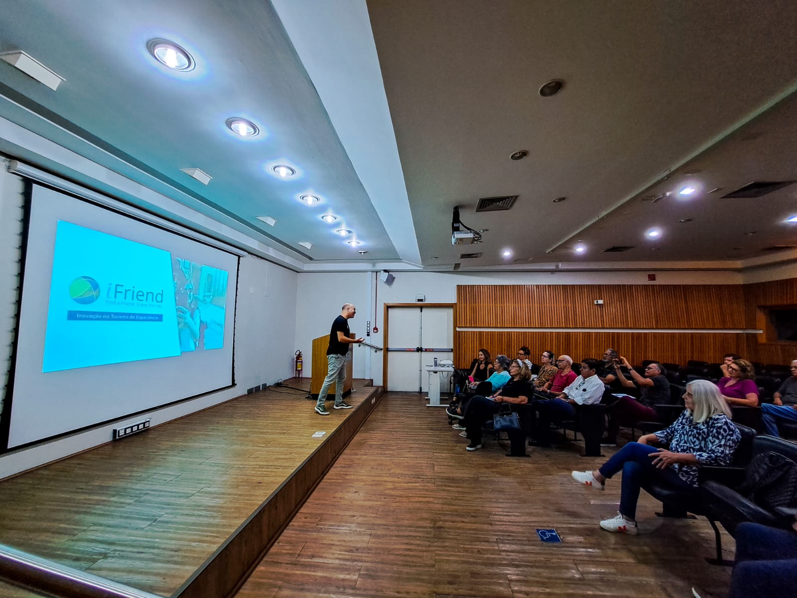 Os alunos do curso Monitoria de Turismo 60+ participaram na manhã de hoje, 14/03, de palestra sobre inovação no turismo de experiência, com Leonardo Brito, fundador do iFriend, site que conecta viajantes a guias e receptivos locais, oferecendo serviços como tours privativos, experiências turísticas, transfers e roteiros de viagens personalizados. A atividade aconteceu no auditório da Smads (Secretaria Municipal de Assistência e Desenvolvimento Social), no Centro.