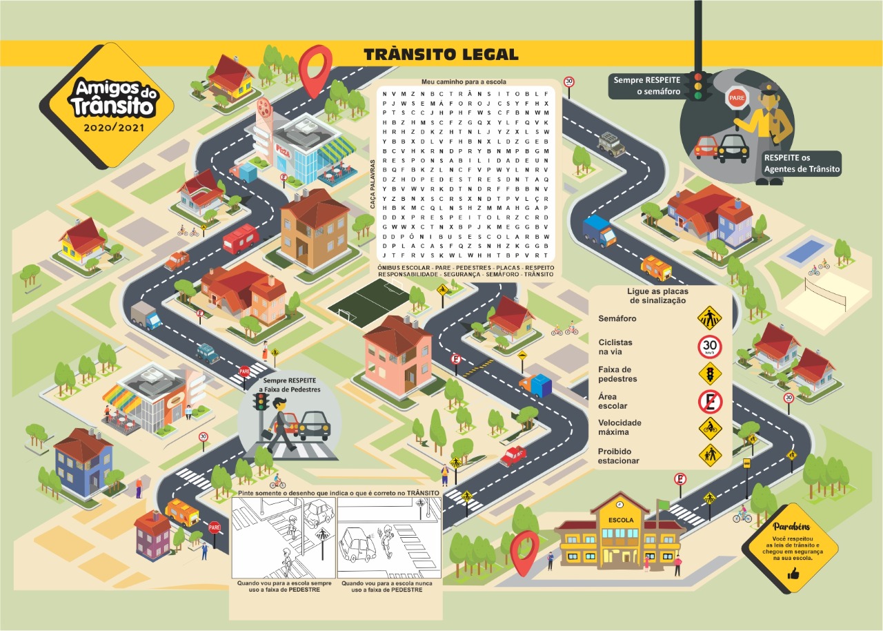 Atividades lúdicas sobre segurança e educação no trânsito que serão trabalhadas com crianças do ensino fundamental