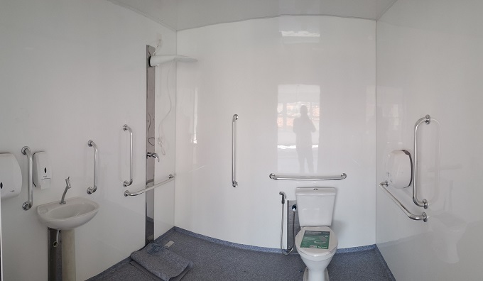 Vista interna de um dos banheiros dos quartos do anexo da UPA Piracicamirim