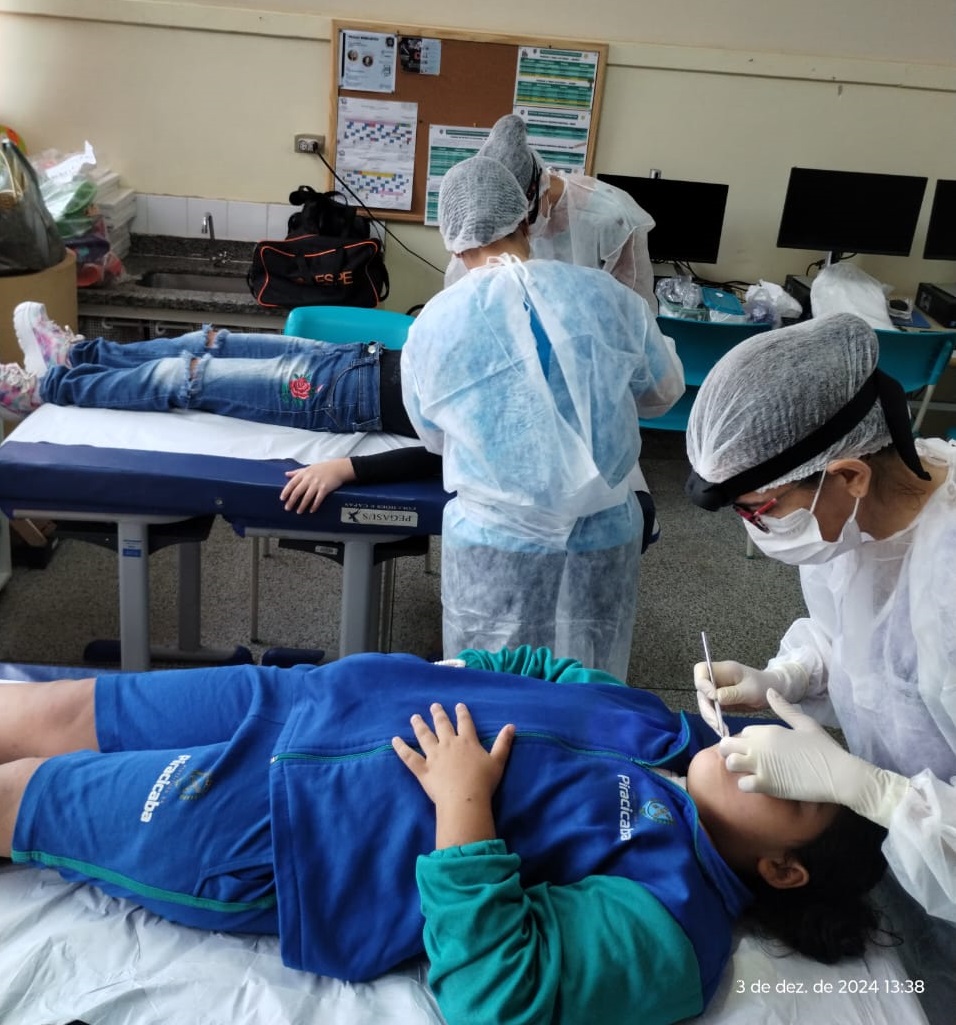 Com objetivo de ampliar as ações de saúde bucal entre os estudantes da rede pública no contexto do Programa Saúde na Escola (PSE), a Secretaria de Saúde realizou o projeto-piloto em saúde bucal, no último dia 03/12, por meio da equipe de saúde bucal da Unidade de Saúde da Família (USF) Anhumas, em parceria com a Escola Municipal Maximiano Fermino Gil, realizando tratamento odontológico em crianças na faixa etária de 6 a 8 anos. A ação chamada de Mais Saúde Bucal na Escola acontece por meio de incentivo do Ministério da Saúde, por meio da Portaria SAPS nº 40/2024, e contou com o apoio da Coordenação de Saúde Bucal do município.