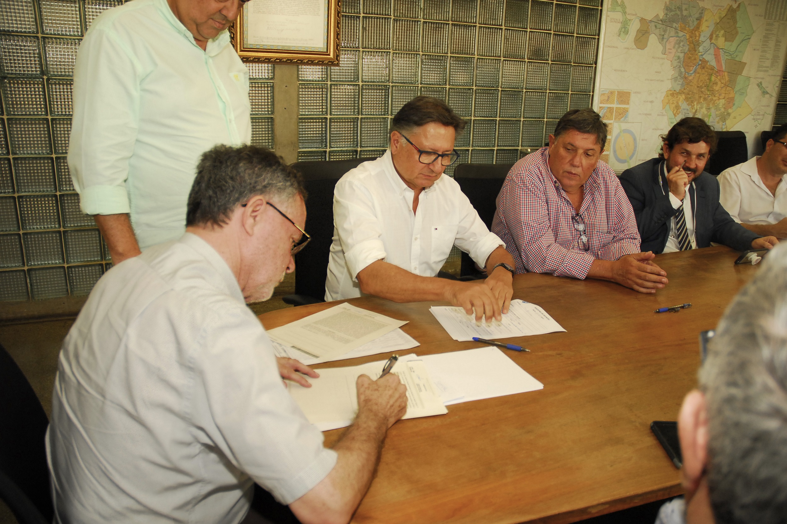 Para celebrar a conquista, o prefeito convidou empresários para um encontro em seu gabinete e para a assinatura da primeira escritura de doação, na tarde de quinta-feira, 04/04. Participaram os empresários Aldano Benetton, José Luiz Benetton, Daniel Luccas Camargo, Jeomar Serafim, André Antonio Simioni, Christian Campos, além de Sérgio Pinilha, do 1º Tabelião de Notas. O grupo mostrou ao prefeito a primeira página de um jornal da cidade, datada de 14/08/1999, que mostra reunião com o então prefeito Humberto de Campos, para a criação do Nupeme que, agora, 20 anos depois, é regularizado.