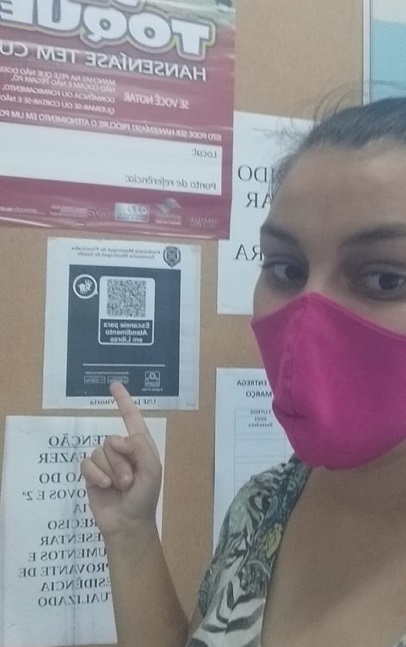 A jovem se emociona ao se deparar com o QR Code na Unidade de Saúde