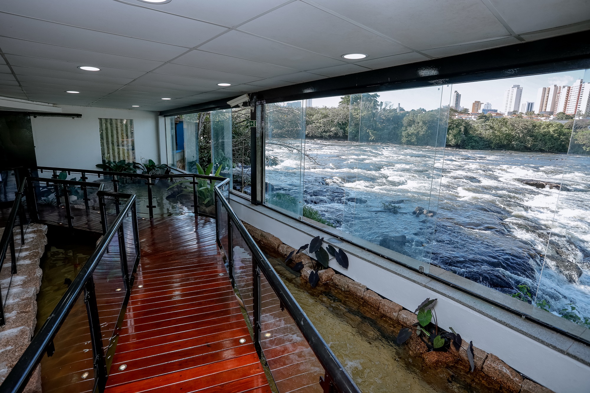 Aquário tem vista privilegiada para o salto do rio Piracicaba