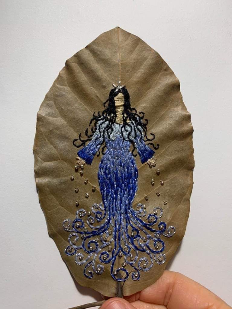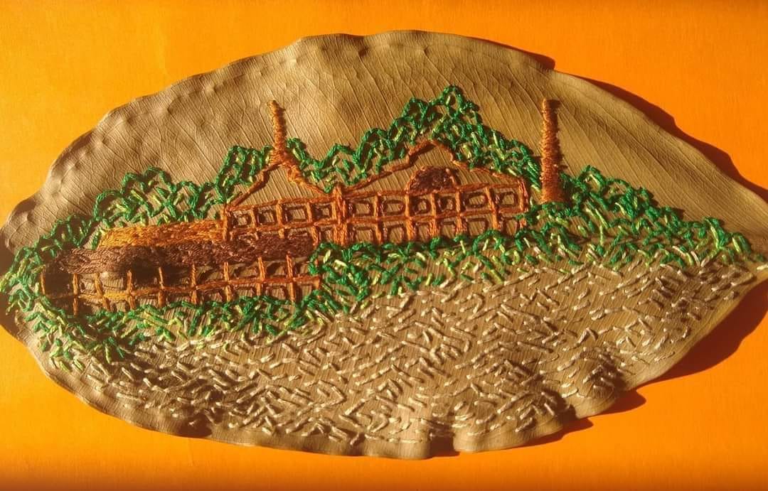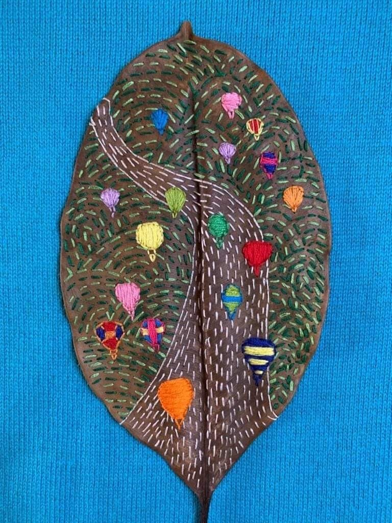 Os quadros são criados em folhas secas ou tratadas de árvores