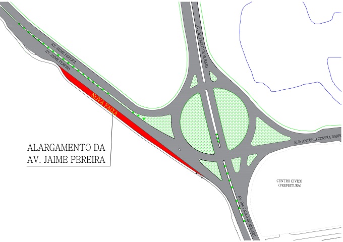 A Avenida Jaime Pereira, no entroncamento com a Avenida Dr. Paulo de Moraes, no bairro Castelinho, será alargada em uma extensão de 217 metros. Orçada em R$ 210 mil, a obra tem prazo de conclusão previsto para 12 meses. Com o alargamento da avenida, será aumentada uma faixa de rolamento ao lado do talude existente e serão feitos ajustes geométricos nos canteiros centrais para direcionar melhor os veículos, melhorando a fluidez e segurança dos motoristas que passam por aquela via.