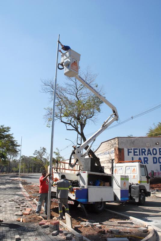 Os postes metálicos ornamentais de nove metros de altura possuem braços para duas luminárias, uma voltada para a pista de rolamento e outra para o calçadão e ciclovia. No total serão colocados 38 postes e 76 luminárias.