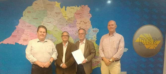 O prefeito Barjas Negri e o superintendente do DER, Rafael do Amaral Campos Junior, assinaram hoje (04), em São Paulo, convênio entre Prefeitura de Piracicaba e Governo do Estado para o recebimento da verba de R$ 5 milhões que será investida na recuperação de um trecho de quatro quilômetros da via de acesso SPA-155/308, conhecida como estrada da Ceasa, que liga a rodovia do Açúcar (SP-308) à rodovia Cornélio Pires (SP-155). Estiveram presentes também o deputado estadual Roberto Morais e o gerente do posto da Ceagesp em Piracicaba, Marcos Ludovico Valentini.