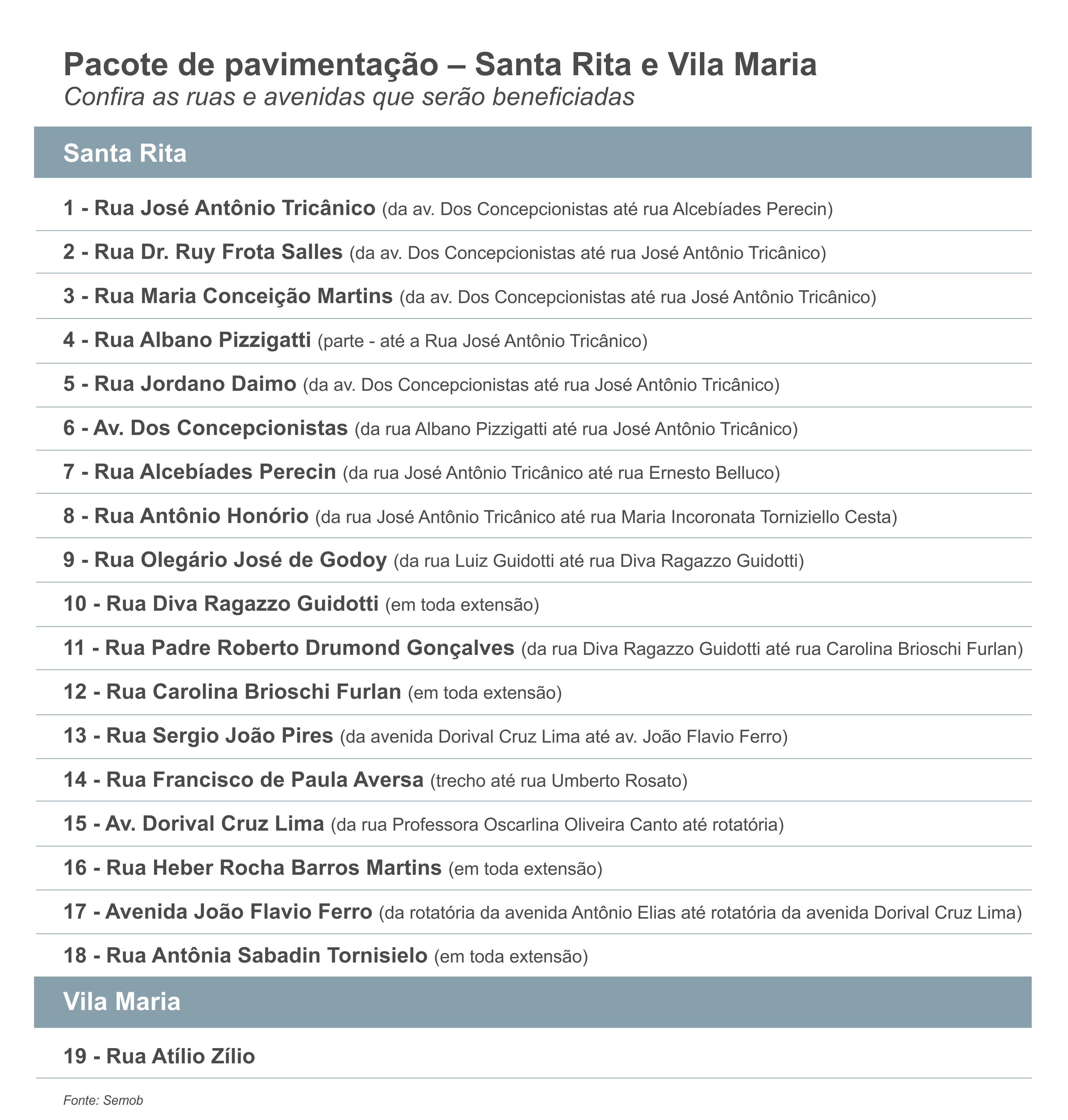 Rua Maria Conceição Martins, entre av. dos Concepcionistas e rua José Caprânico também será beneficiada