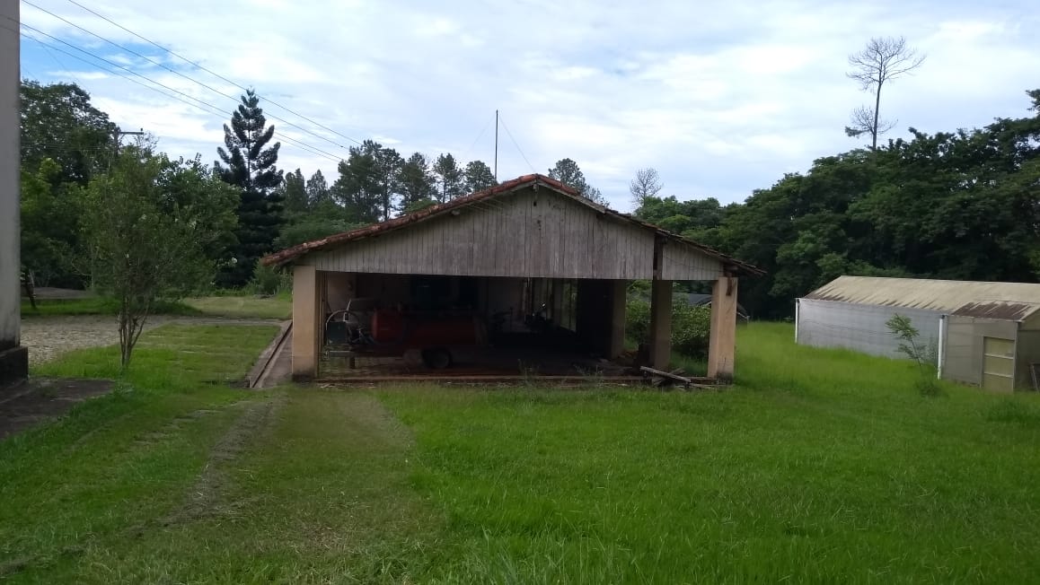 Imóvel 23 visto de outro ângulo: o galpão já existente, a estrutura de cobertura, telhas e alvenaria serão preservados