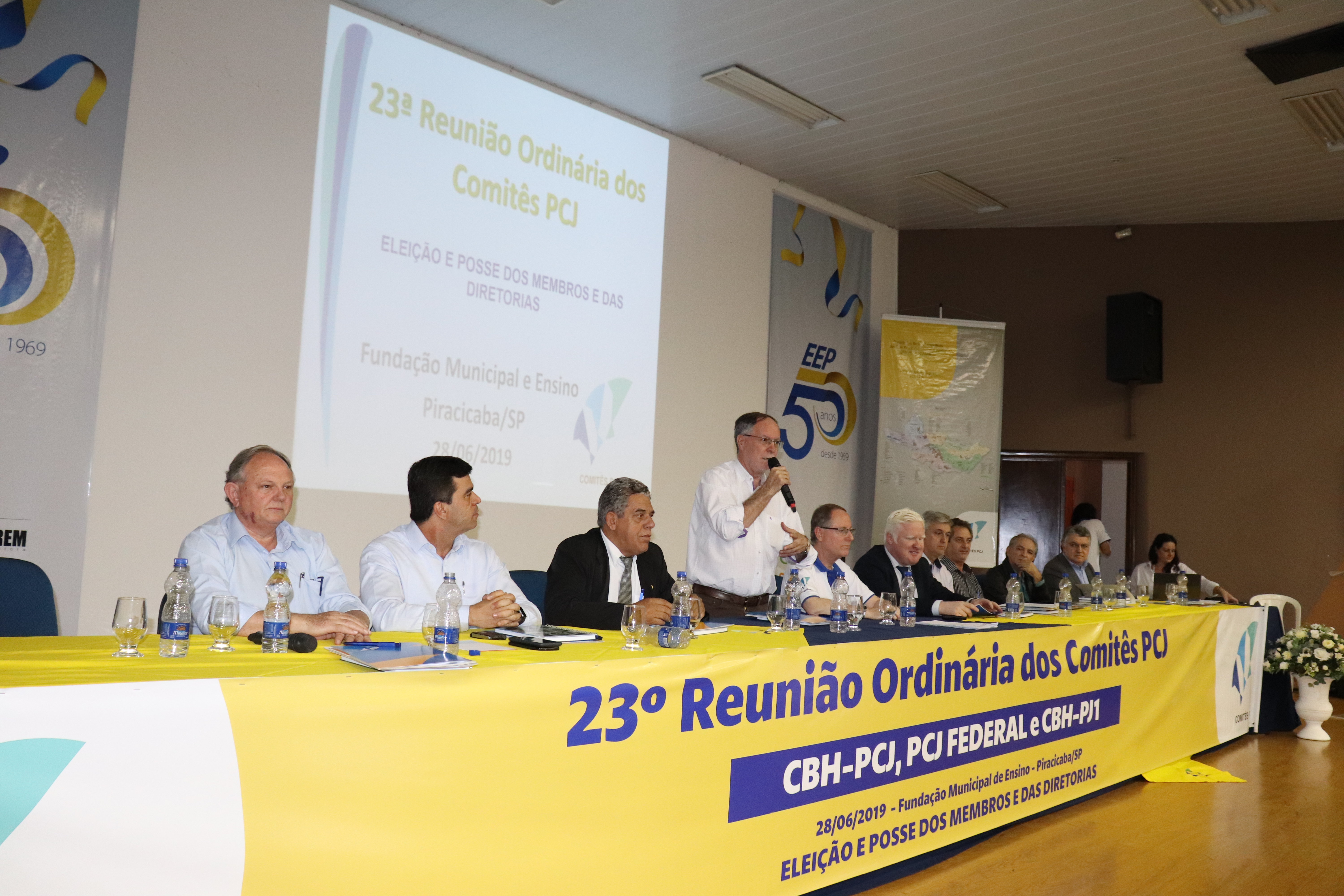 O prefeito de Piracicaba, Barjas Negri, foi reeleito presidente dos Comitês PCJ, para o mandato de 2019 a 2021. A votação, por unanimidade, ocorreu na manhã desta sexta-feira, dia 28, durante a 23a Reunião Ordinária dos Comitês PCJ, na Fumep (Fundação Municipal de Ensino de Piracicaba). O encontro contou com a participação de cerca de 150 pessoas. Além da eleição da diretoria, houve a posse dos membros eleitos da sociedade civil (usuários de recursos hídricos e organizações civis) e indicados pelos municípios e órgãos governamentais (estados e União).