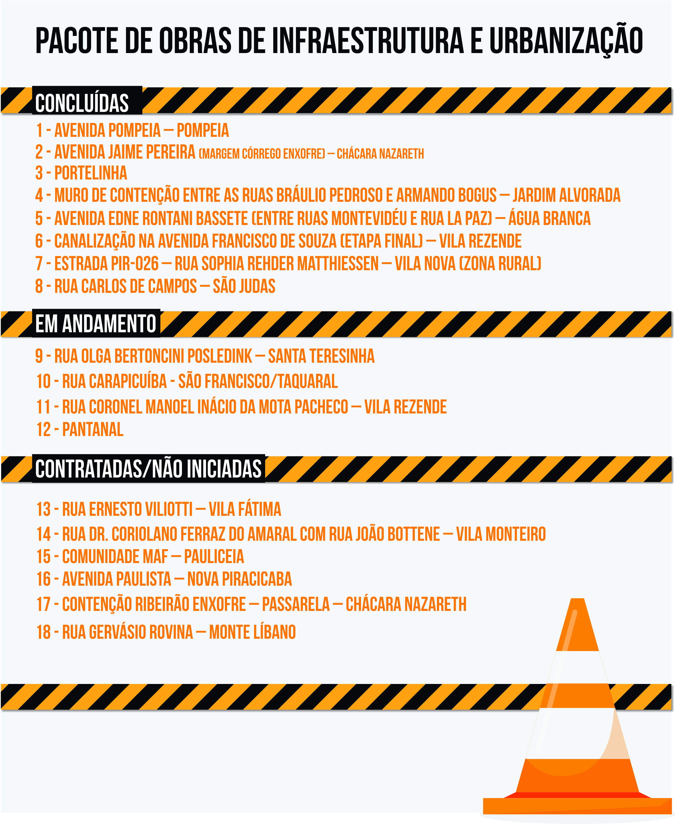 Confira abaixo a lista de todos vos pontos beneficiados e o andamento das obras: