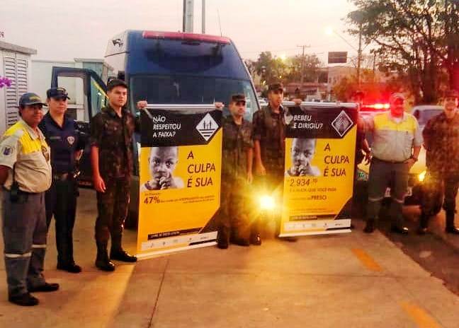 Agentes de trânsito, atiradores do tiro de guerra e guardas civis entregaram aos motoristas kit da campanha “A culpa é sua” e folder aos pedestres que passavam no local. Ricardo Piton, explica que o local é muito bom para esse tipo de ação. “Aqui o movimento é grande e devido aos semáforos conseguimos conversar explicando sobre a campanha”.