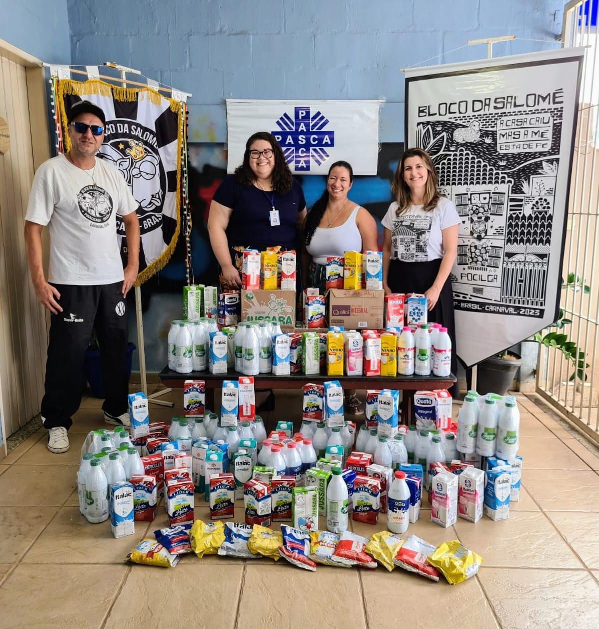 O Bloco da Salomé doou na tarde de hoje, sexta, 24/02, 250 litros de leite à Pasca (Pastoral do Serviço de Caridade). O alimento foi arrecadado durante a folia do grupo, que abriu os cortejos do Carnaval 2023 – Roberto Crivellari no dia 4/02, na avenida Cruzeiro do Sul, no bairro Nova Piracicaba. Os desfiles de oito blocos da cidade ao longo deste mês de fevereiro teve apoio da Prefeitura de Piracicaba, por meio da Semac (Secretaria Municipal da Ação Cultural).
