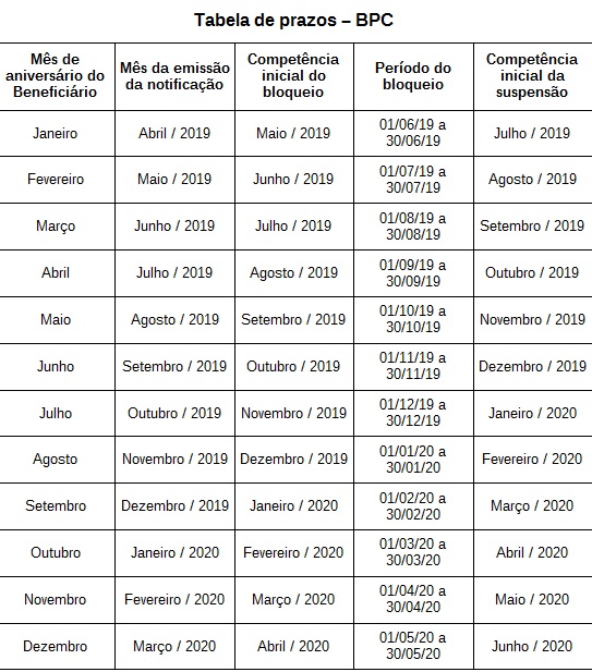 Todos os beneficiários do BPC estão sendo notificados através de carta e extrato bancário conforme mês do aniversário. Caso seja identificado que os beneficiários não receberam a notificação, estes têm o beneficio bloqueado no mês seguinte, para que procurem o INSS ou liguem no 135. Dessa forma o beneficiário recebe a informação de que tem o prazo para fazer a inclusão no Cadastro Único e confirma que está ciente. Após 48h da informação, o benefício é liberado e o beneficiário entra no prazo para a suspensão como os beneficiários já notificados inicialmente (tabela abaixo). Piracicaba tem 5392 beneficiários no total e 10,88%, que representa 587 pessoas, deste total não tem cadastro ou está desatualizado.
