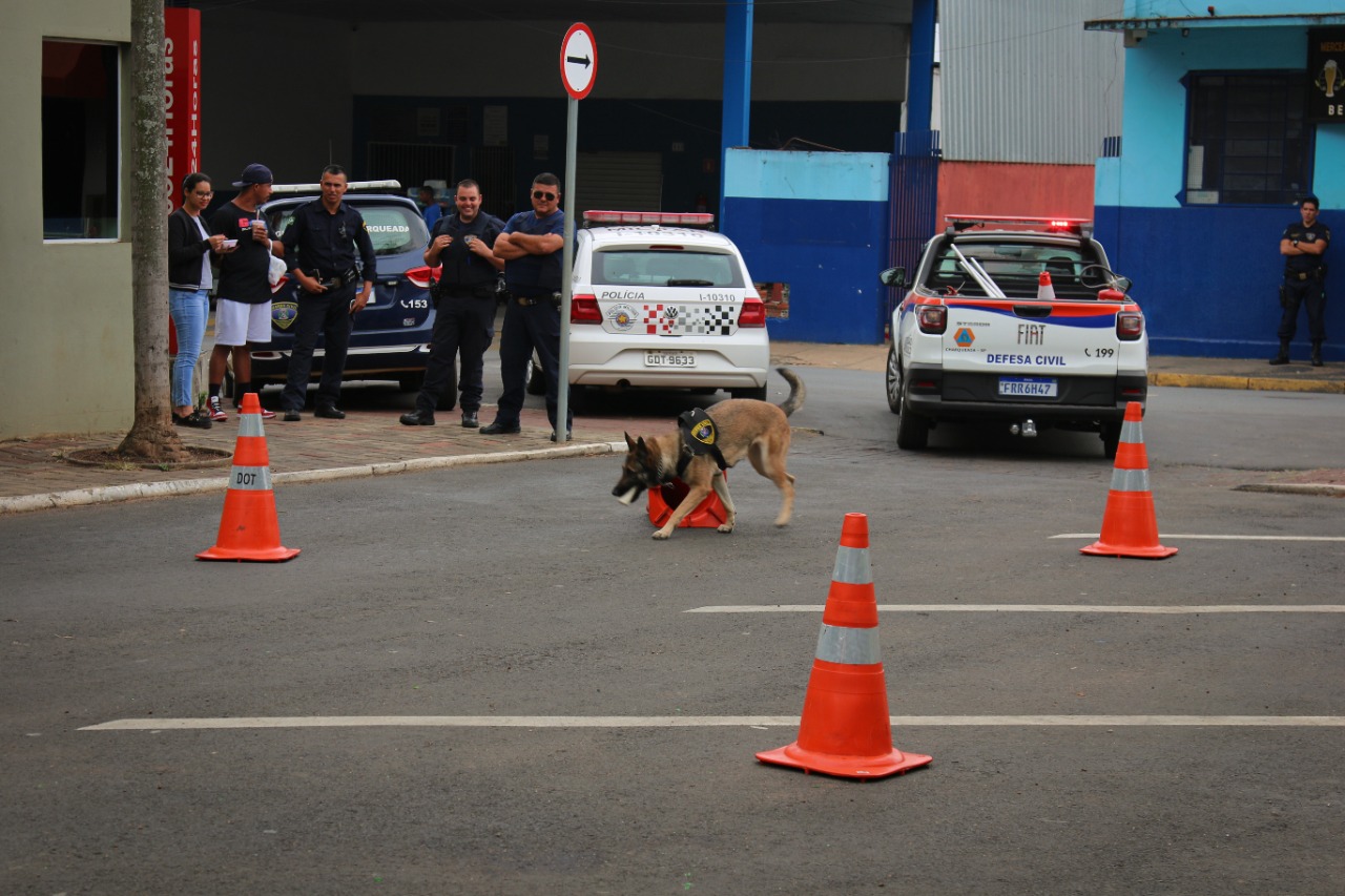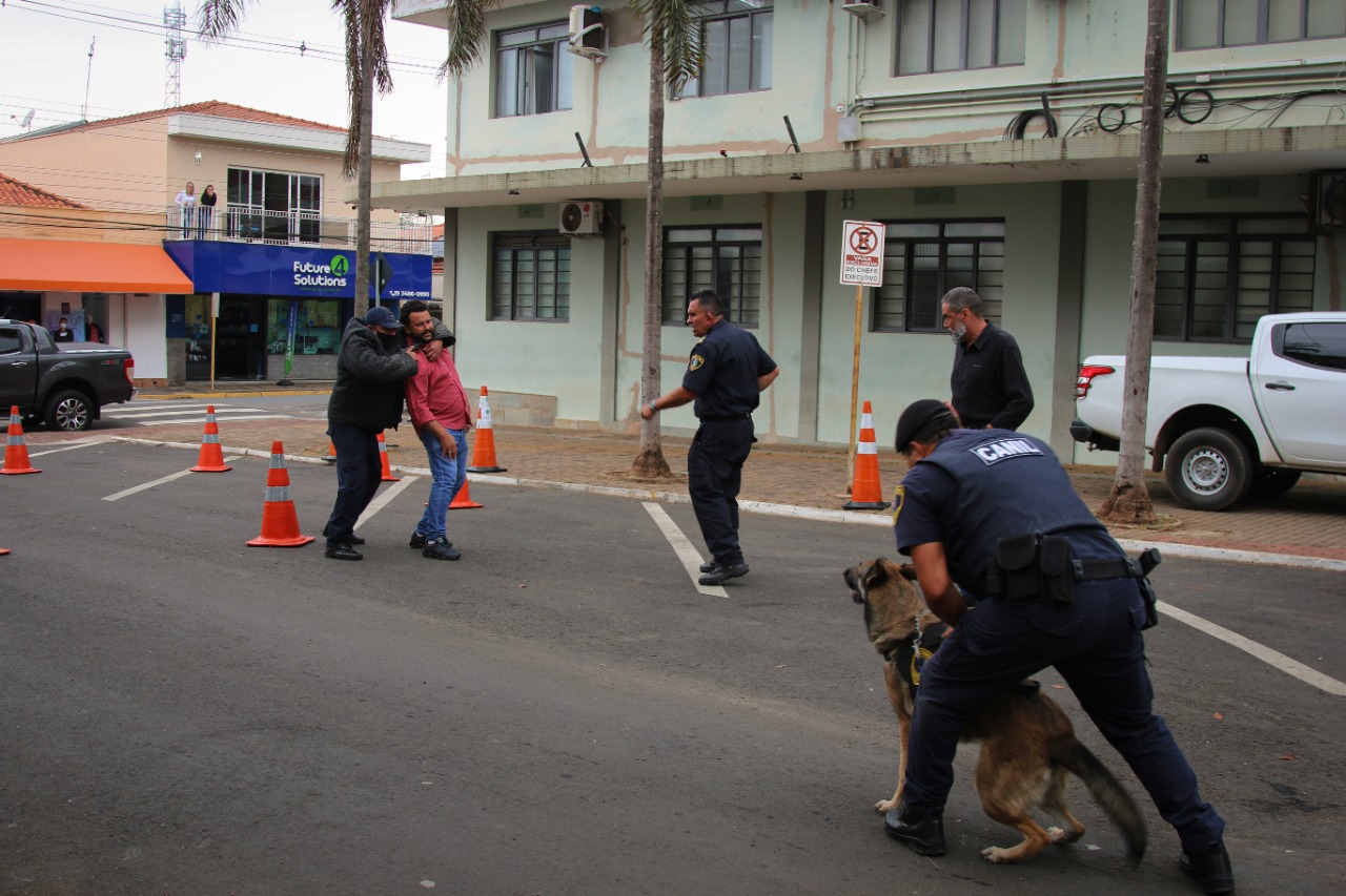 Os GCs Geison e Leandro, acompanhados dos cães Maya e Radu, demonstraram o potencial dos cães na detecção de entorpecentes por meio do faro e a habilidade de guarda e proteção, com a demonstração de salvamento de refém, em que o prefeito Rodrigo de Arruda atuou como vítima.