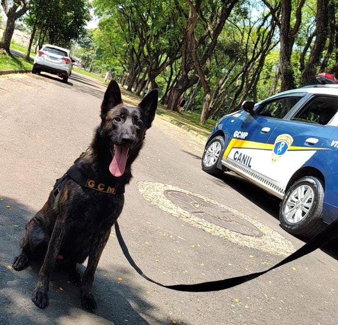 O cão Radu, do Canil da Guarda Civil (GC), realizou sua primeira apreensão de drogas na manhã de hoje, 09/02, em área verde no Jardim Alvorada. O animal localizou 68 porções de maconha embaixo de uma árvore, sob folhas e galhos e secos. Com 13 meses de idade, Radu nasceu no Canil e é treinado para o trabalho policial.